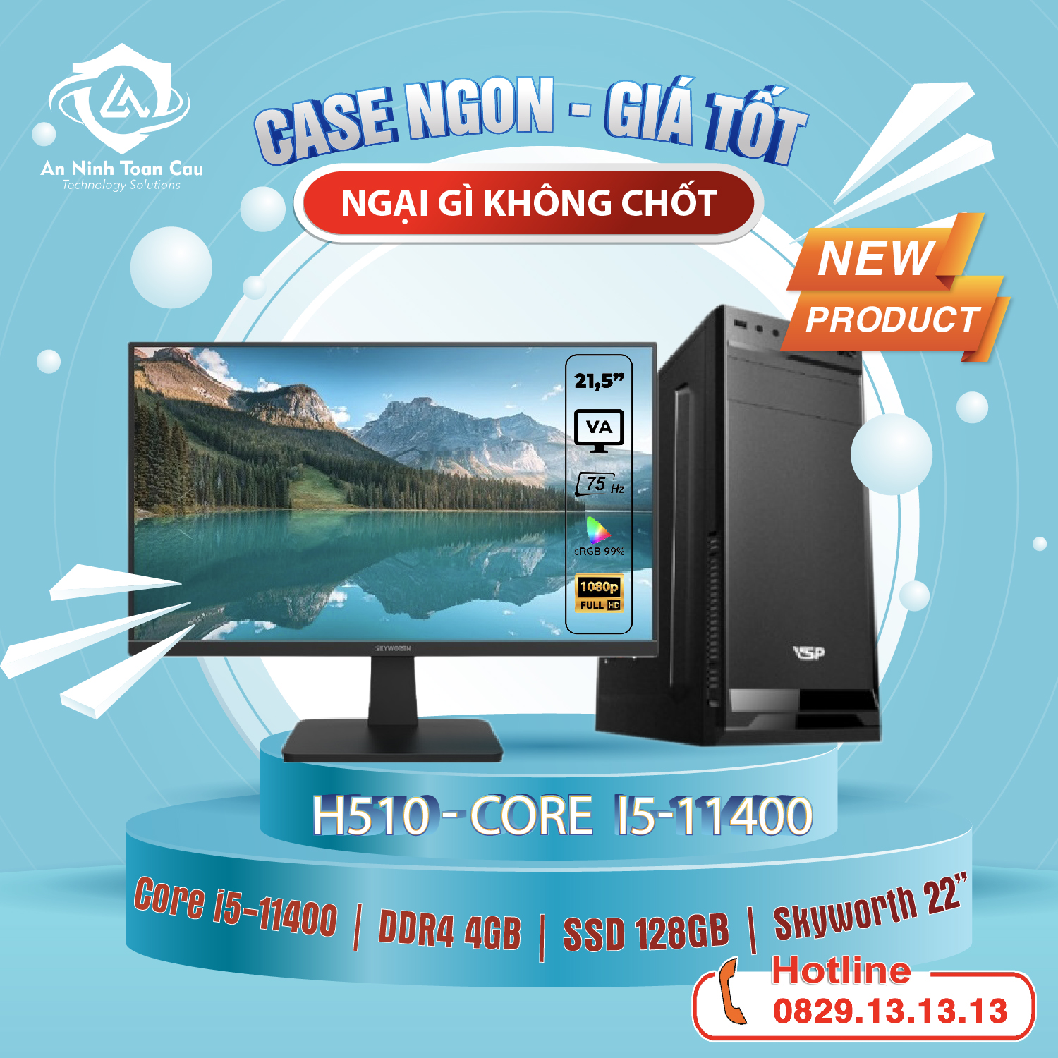 Bộ Case lắp sẵn H510 – RAM 4G – MH 22 inch CPU Intel Core i3-10105/ Main H510/ 4GB RAM/128GB SSD/ 420W đã được An Ninh Toàn Cầu tối ưu hóa để hướng đến nhu cầu phổ thông của người dùng phục vụ nhu cầu công việc đơn giản, phù hợp với dân văn phòng, học sinh, sinh viên.