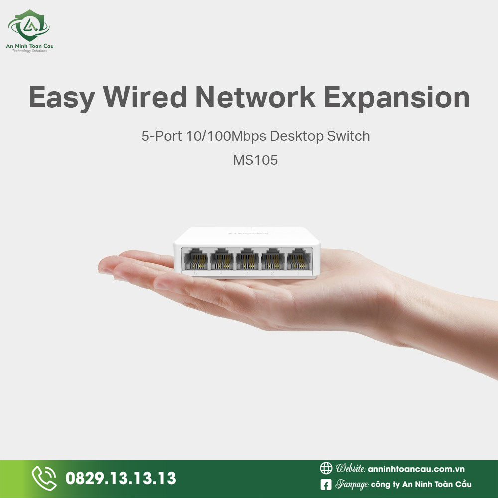 Được trang bị 5 cổng Ethernet 10/100Mbps, MS105 cho phép mở rộng mạng có dây một cách dễ dàng. Thiết bị tương thích với nhiều loại thiết bị như máy tính, máy in, camera IP, TV thông minh, máy chơi game… Điều này giúp MS105 trở thành lựa chọn lý tưởng cho gia đình, văn phòng nhỏ hoặc môi trường ký túc xá.