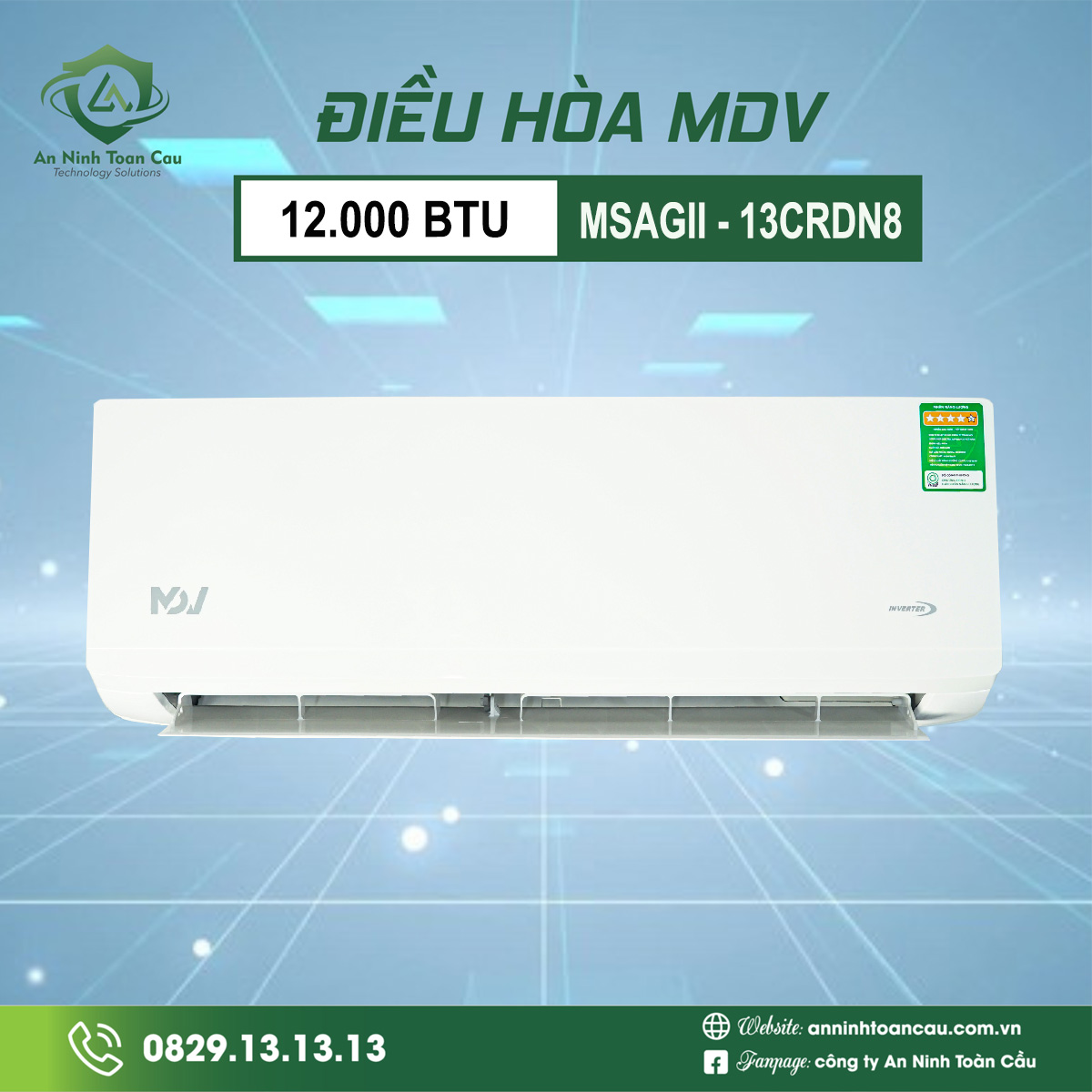 Điều hòa MDV 12.000 BTU MSAGII – 13CRDN8 là dòng điều hòa được đông đảo khách hàng yêu thích ngay từ khi ra mắt thị trường với diện mạo thẩm mỹ, bên trong máy tích hợp hàng loạt công nghệ tiên tiến. Sản phẩm sở hữu công suất làm lạnh 1.5 HP – 12.000 BTU cùng khả năng làm lạnh nhanh chóng cho phòng diện tích khoảng 20m2. Sản phẩm hiện được phân phối bởi Công ty TNHH An Ninh Toàn Cầu.